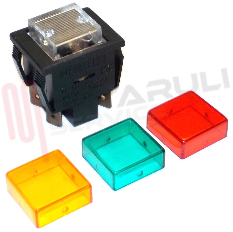 INTERRUTTORE PUSH BIPOLARE CAVA QUADRA LUMINOSO 4 CONTATTI A FASTON KIT CON 4 CAPPUCCI COLORATI PER VARI IMPIEGHI
