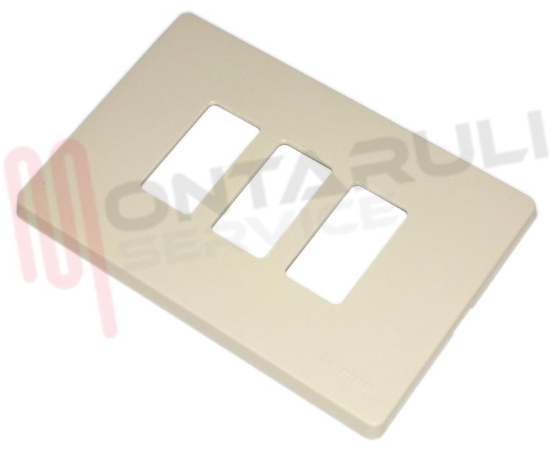 PLACCA BIANCA AVORIO RETTANGOLARE 3 TASTI IN RESINA SCATOLA TONDA BITICINO SERIE MAGIC