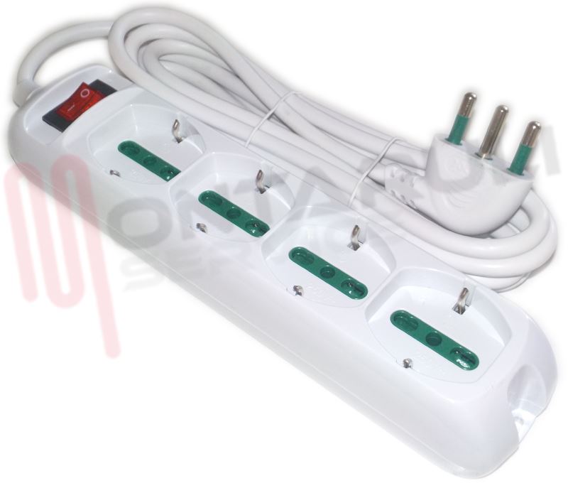PRESA MULTIPLA 4PR. BIVALENTE/SCHUKO + INT. CAVO 3MT.