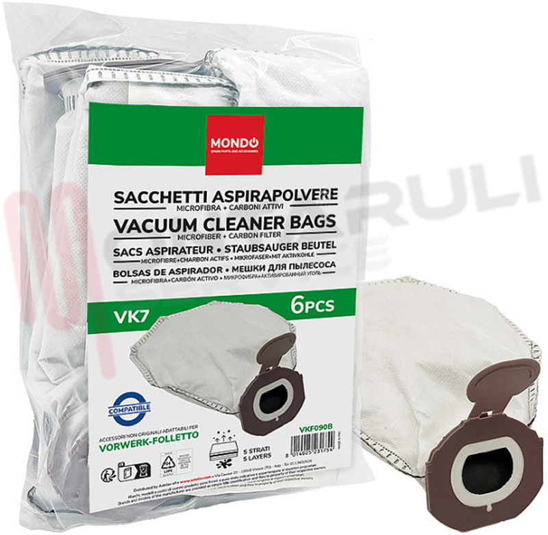 VKF090B SACCHI PER ASPIRAPOLVERE SCOPA VORWERK FOLLETTO COMPATIBILE VK7s FP7 CF. 6