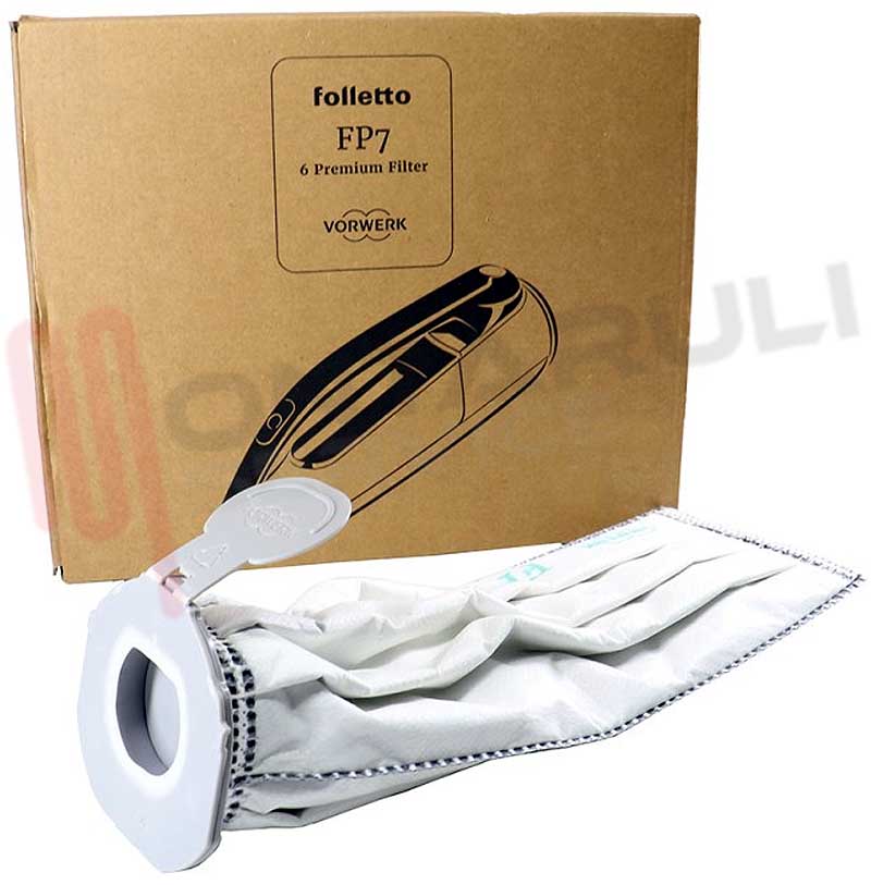 CONFEZIONE FP7 DA 6 SACCHETTI PER ASPIRAPOLVERE SCOPA RICARICABILE VORWERK FOLLETTO MODELLO VK7 VK7S SENZA FILI FILTRELLO PREMIUM ORIGINALE